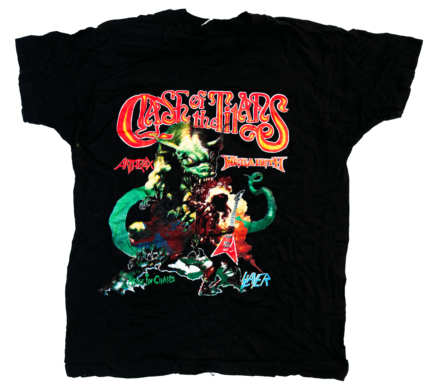 10-11. Tom Araya's personal t-shirt in support of the Clash of the Titans Tour. From the Collection of Tom Araya