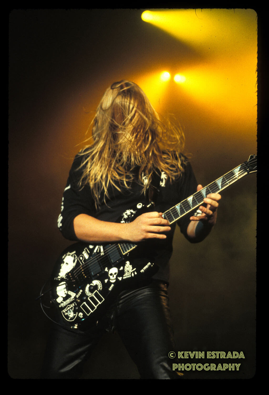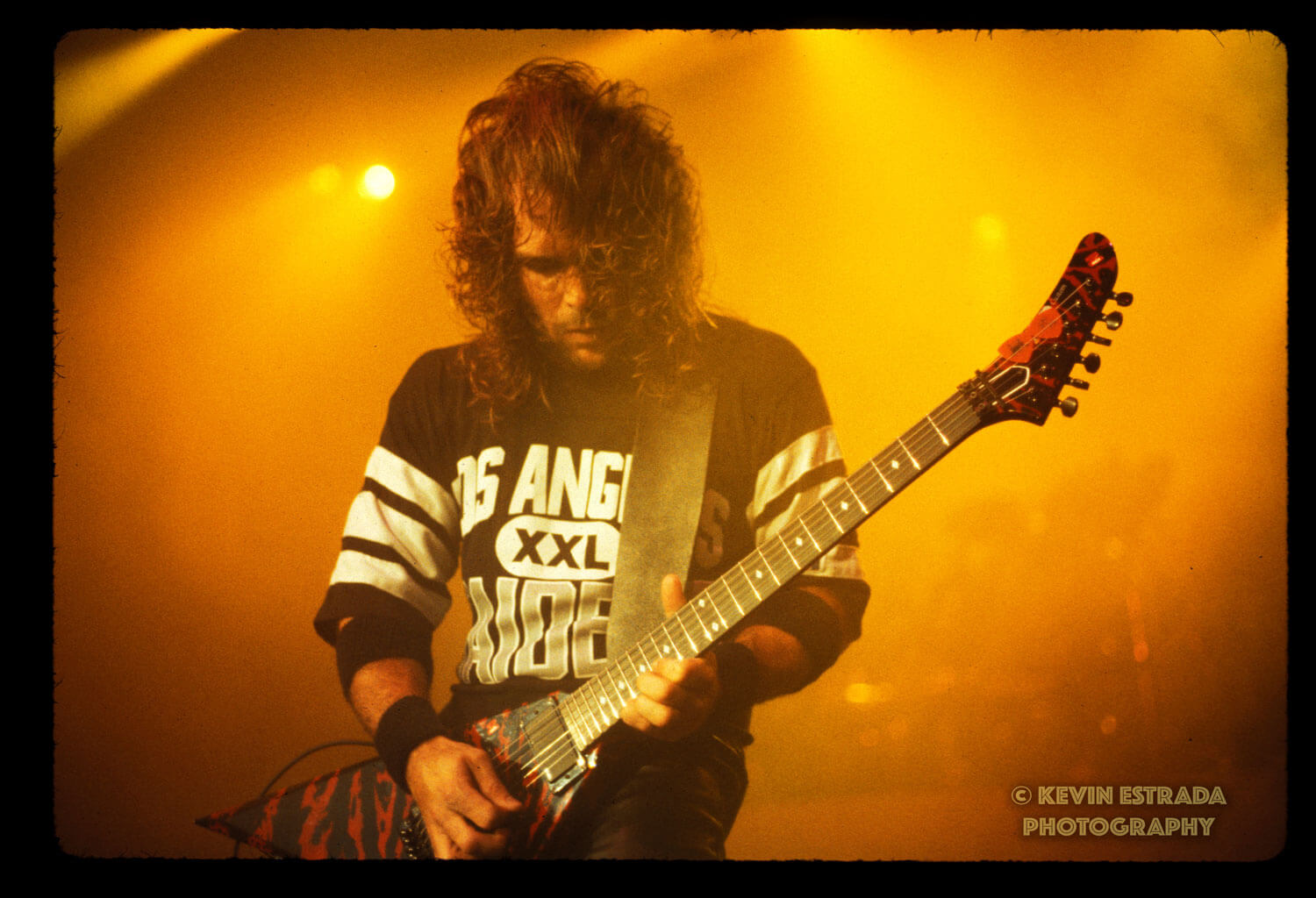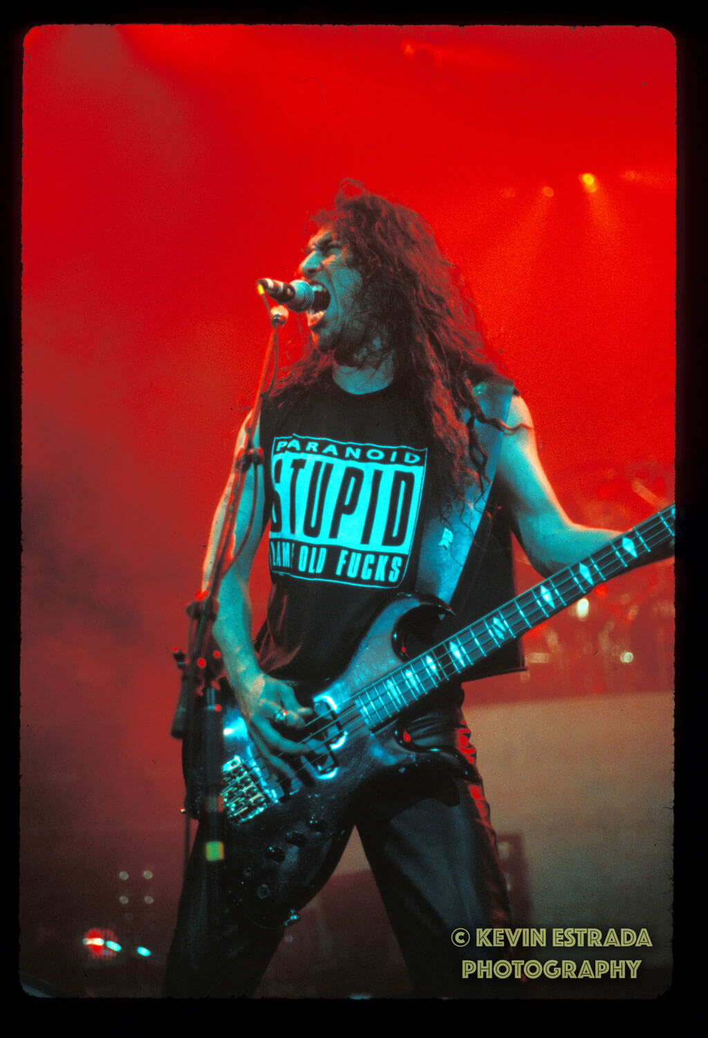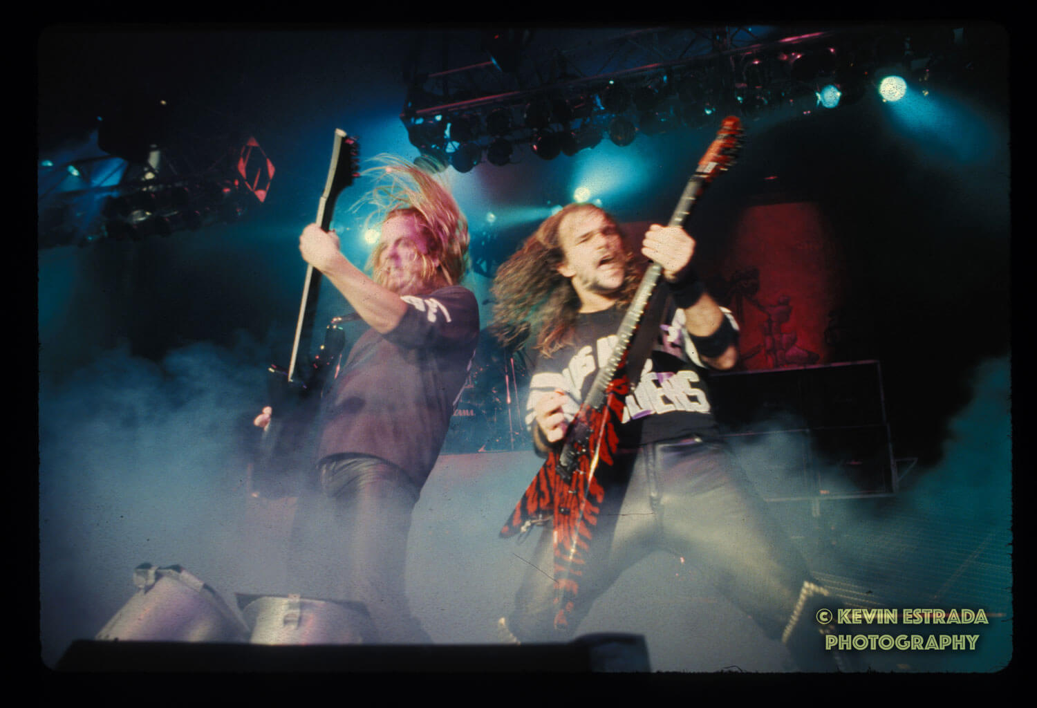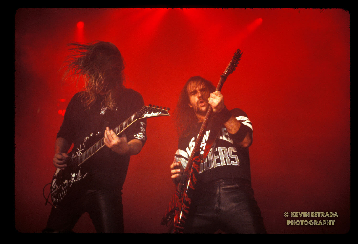 12-13. Slayer in performance at the Pacific Amphitheatre, Costa Mesa, California, May 25, 1991. Photos: Kevin Estrada From the Collection of Kerry King