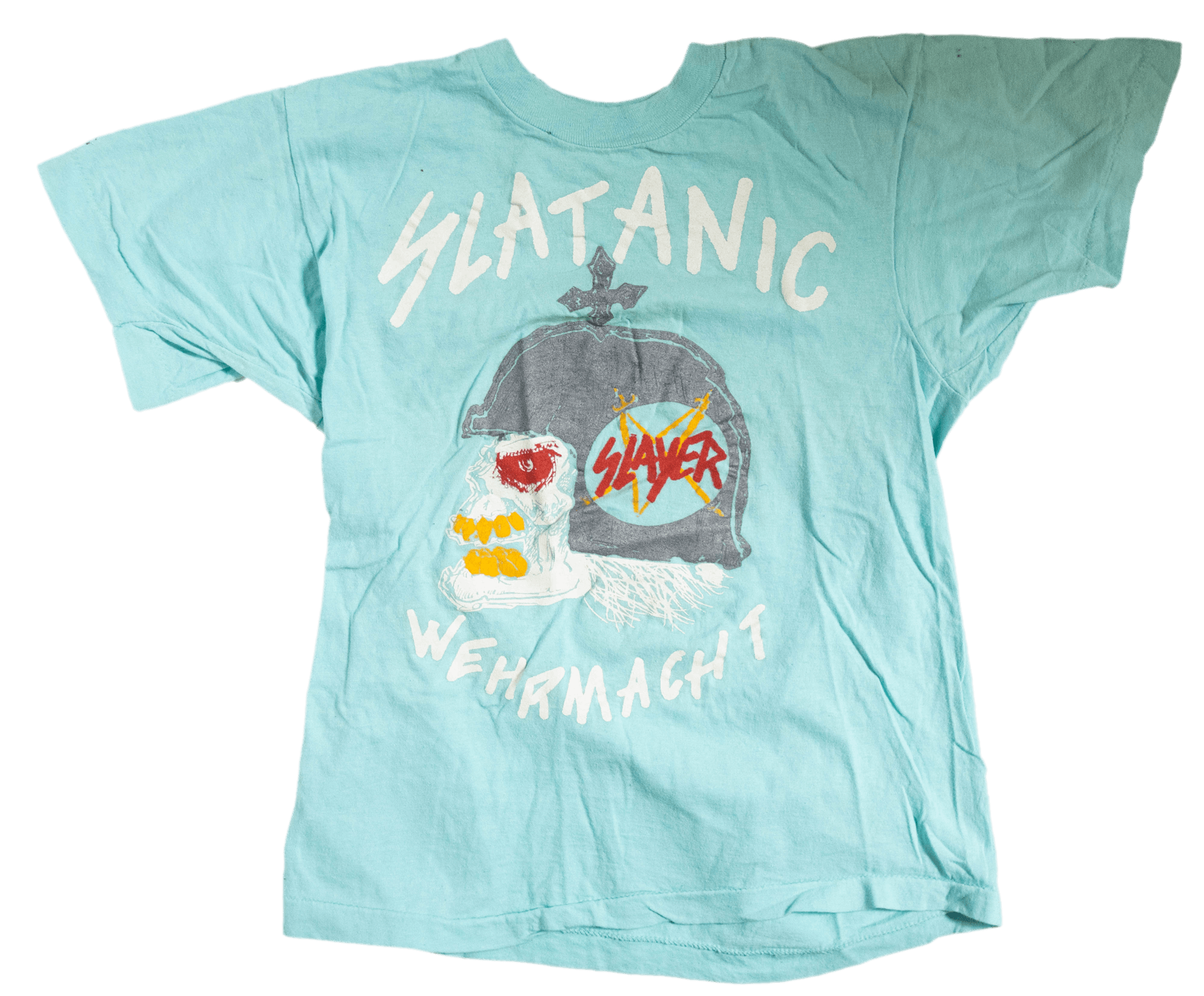 The fanbase was growing fast: loyal, vocal, and ready to represent. Many of these sales likely came through gigs along the Hell Awaits tour, but others may have arrived through Slatanic Wehrmacht membership, which was launched around this time. For ten dollars, fans gained access to exclusive merch, insider updates, and a shirt proclaiming allegiance to the new kings of thrash.